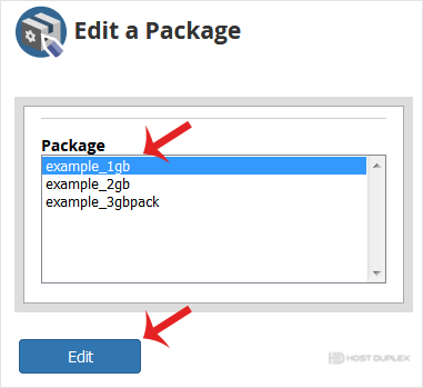 4. Under Edit a Package, you can modify Resources like Disk space, Bandwidth, etc.