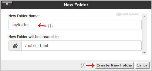 5. In the New Folder Name field, enter your folder name like my-folder (without the quotes). Then click on the Create New Folder button.