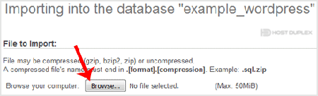 6. Under File to Import click on the Browse button, Select SQL file from your PC.