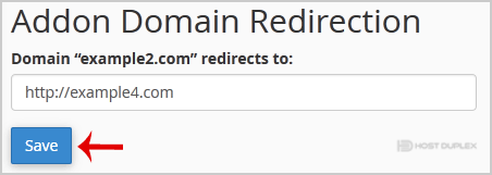 4. Enter the link to which you wish to redirect the add-on domain in the available text box.