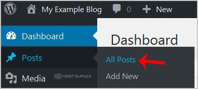 2. Under the dashboard menu, hover your mouse on Posts and then click on All Posts.